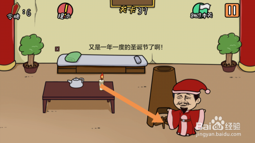 第37关将蜡烛拖动到木材处就可以过关了。