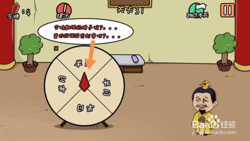 第31关将刺客这两个字拖动到转盘上,然后点击转盘就过关了。