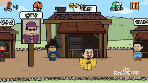 第33关在帽子店、眼镜店、衣服店打通缉令上人的帽子、眼镜、衣服就过关了。