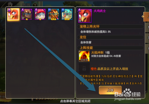 我们布阵的加号按钮,选择一个宠物点击上阵按钮,宠物改换当作功。