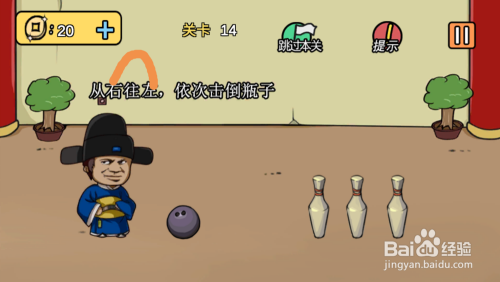 第14关将左字拖动到右字处,然后点击保龄球就过关了。