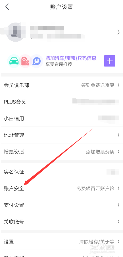 在京东账户设置界面里直接点击【账户平安】选项,如下图所示。