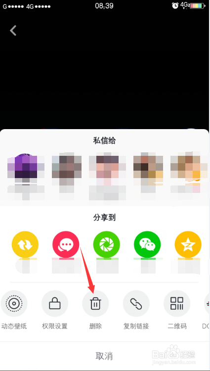 下方弹出窗口找到删除并点击。