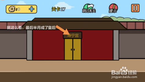 第27关将皇后着两个字拖动到坤宁宫就过关了。
