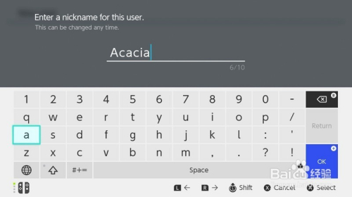 利用键盘为您的帐户选择名称。
