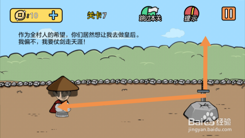 第7关标的目的上拖动剑,然后等剑插入石头,将剑拖动到本家儿角身上就过关了。