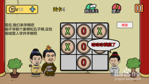 第4关点击框框将三个棋子相连就过关了。