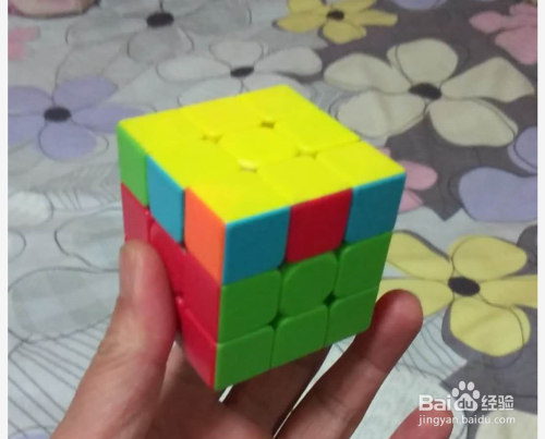 调整方位。将黄色面调整为前面,颜色不异的两个角块、中间块地点的面调整为右面。