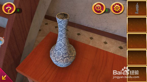 掏出里面的雕像,点击前面的花瓶,操纵雕像将花瓶砸碎。