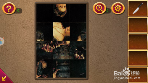 掏出里面的小刀,点击二楼的两幅画,将两幅画拼装完当作,获得两张密码图片,记住它们。