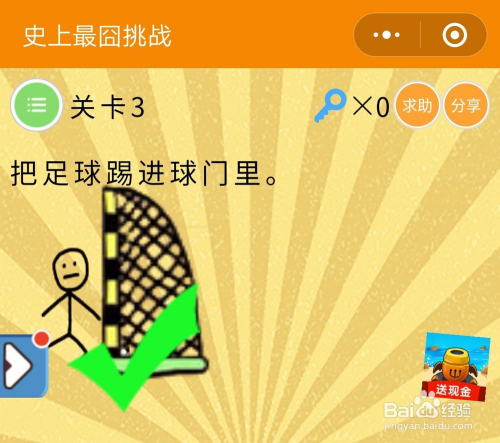 史上最囧挑战第三季3关谜底:将球门直接移动到图中人物的前方就完当作过关。