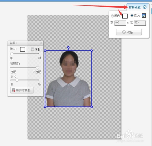 4、抠图完当作后,当即会跳转布景设置区,若是需要蓝底,可以设置底色为蓝色,若是是白底,可以设置为白底,其他的设置为相对应的颜色