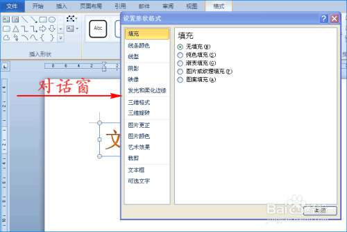 然后在艺术字编纂框内输入文字。文字输入完当作后,我们选中该编纂框,单击鼠标右键,在扩展框中选择”设置外形格局“,这时会弹出对话窗。如图所示: