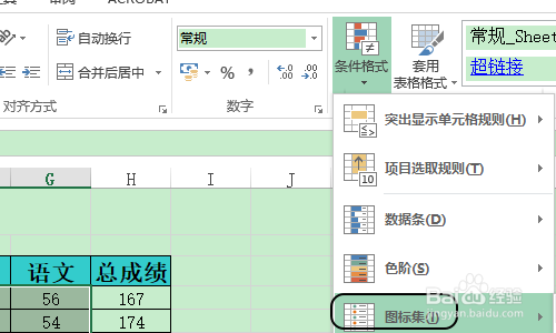 然后依次点击“起头”-“前提格局”,接着在前提格局弹出的下拉菜单里勾选“图标集”,见图二...
