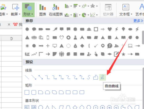 外形栏里图案良多,这里我们选择常用的“自由曲线”,如下图
