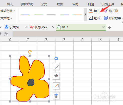 双击图片,在这里我们可以给已画好的图填充颜色和线条等,如下图