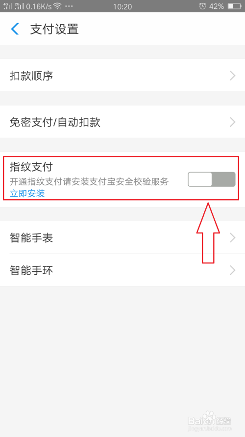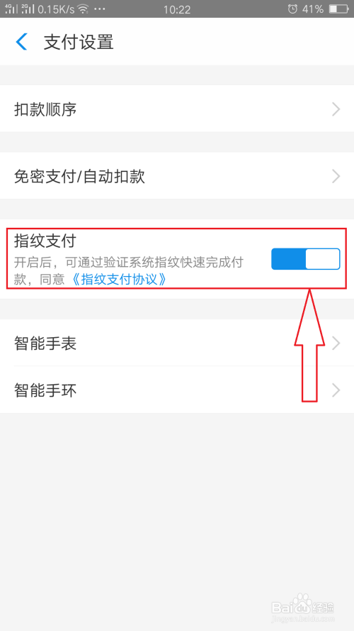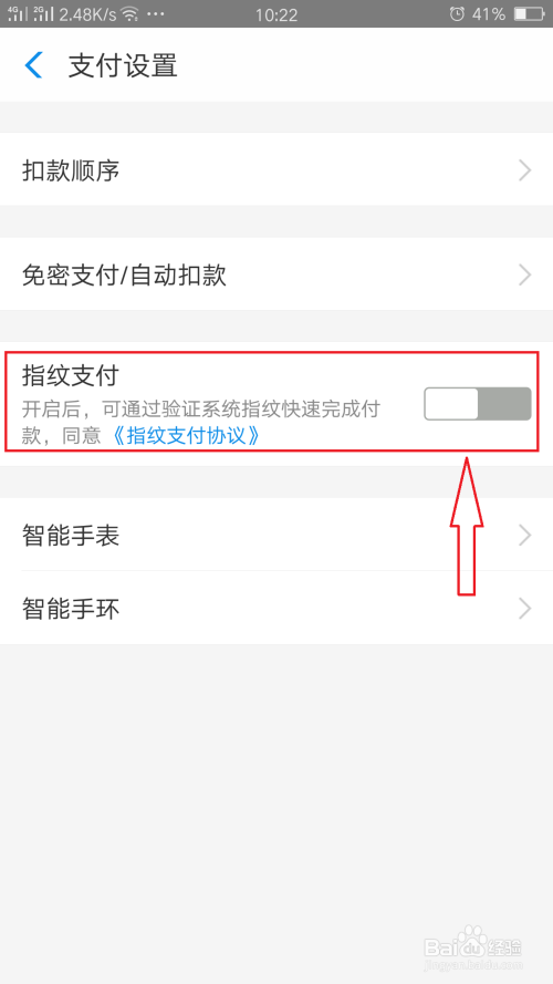 在这里我们便看到指纹付出,将按钮打开