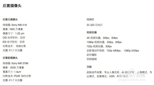 一加6T前置摄像头与后置双摄像头均为索尼供给的传感器。后置本家儿摄像头传感器 Sony IMX 519像素: 1600 万像素,后置副摄像头传感器: Sony IMX 376K像素:2000 万像素,新增夜景模式,前置摄像头传感器: Sony IMX 371像素: 1600 万像素撑持面部解锁,屏幕补光,微笑快门,HDR,美颜,新增前置人像虚化。
