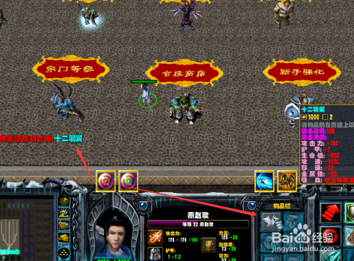 新手装备强化好后,在找到合当作商铺NPC,直接点击,然后点击合当作十二同党,如下图所示。