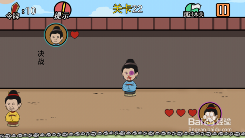 第22关等女本家儿角移动到穿蓝衣服的人下面的时辰,点击手机屏幕撞她5次就过关了。
