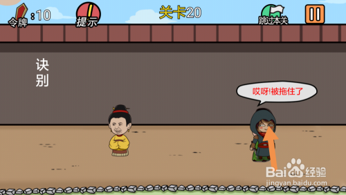 第20关手按住下图中箭头标注的人,等女本家儿角走到终点就过关了。
