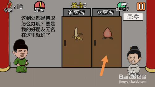 第2关点击女茅厕的门,然后点击女本家儿角就可以过关了。