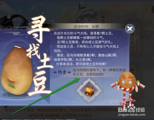 寻找土豆的活动,首先需要分享给好伴侣,才能开启这个活动。活动开启今后,需要前去三个处所进行寻找土豆。