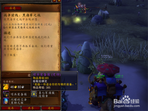 刚到8.1版本登录之后,会看到这个npc又有了一个使命,点击接管。奖励就会有一个385的装备。