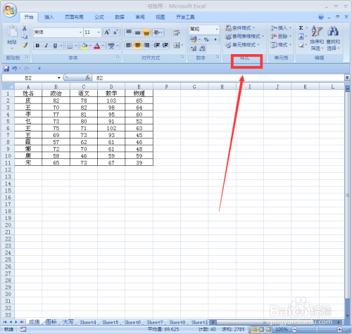 选中A2-E11单位格,找到菜单栏中的“样式”