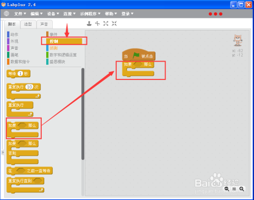 点事务,将当绿旗被点击时拉到右边剧本编纂区中;