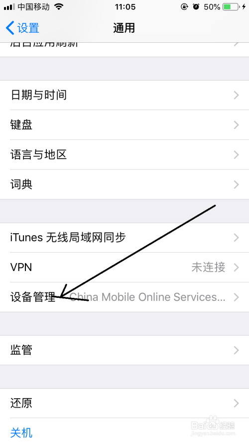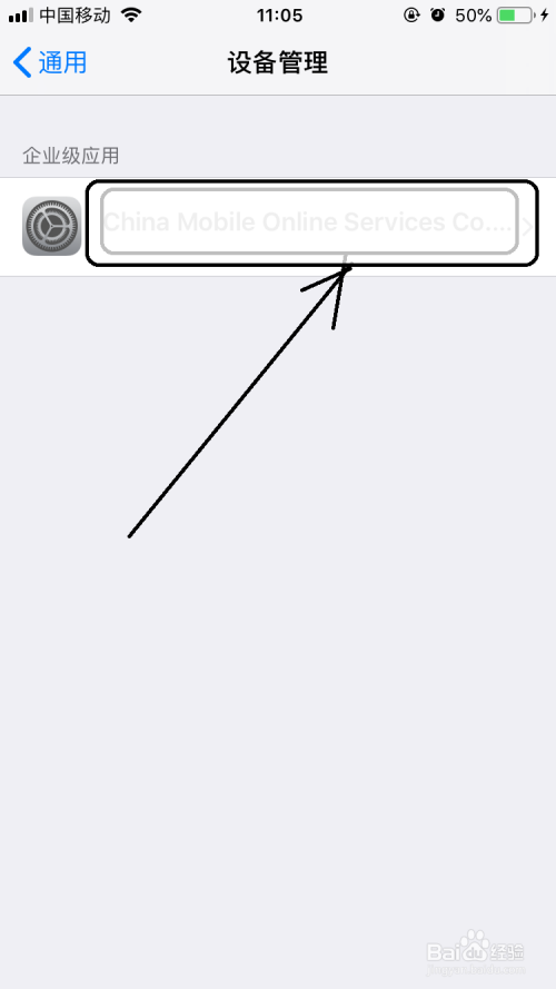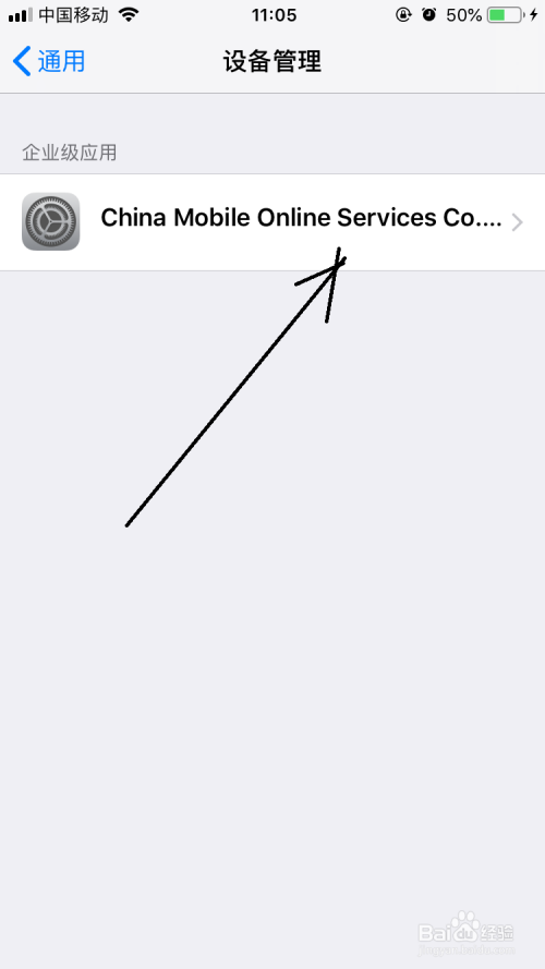 打开设备办理选项界面中点击企业级应用栏中该选项。