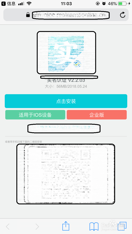 然后点击下载地址后可显示实名认证页面,看你是要安装哪个版本就点击哪个版本,点击选择iOS版本再弹出提醒对话框中点击安装按钮。