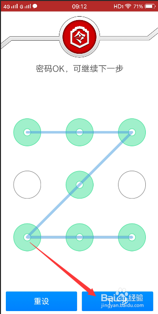 设置手势密码,要求4个点以上哦,完当作后点击下一步。