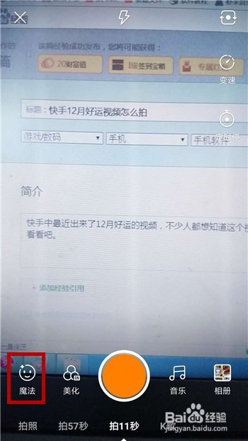 这个视频是需要借助快手的魔法结果,所以在录制界面中点击【魔法】。