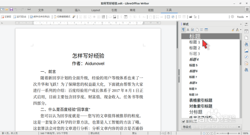 1LibreOffice Writer 起落题目级别,调整段落位置