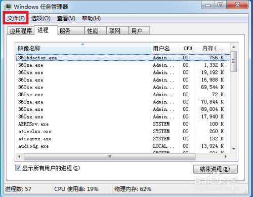打开使命办理器后在顶部菜单栏中点击【文件】选项。