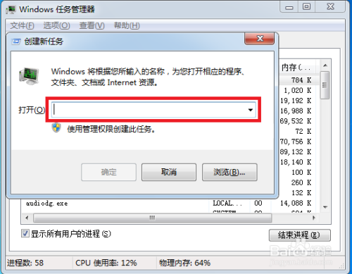 接下来会打开建立新使命界面,这里我们要做的就是直接用快捷键打开桌面,点击输入栏。