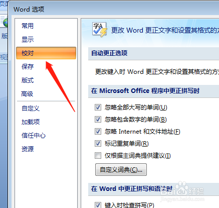 弹出窗口,点击“校对”;