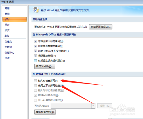 在键入时选择校对,利用上下战书拼写查抄前面的方框中把√去失落;