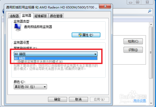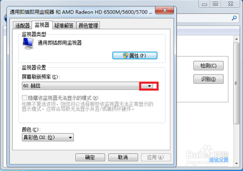 接下来就可以从头选择屏幕的刷新频率了,如许大师在试着看是否解决问题,根基按照这个方式都能解决这个问题。