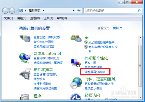 在节制面板界面中找到【外不雅和个性化】下方的【调整屏幕分辩率】选项并点击。