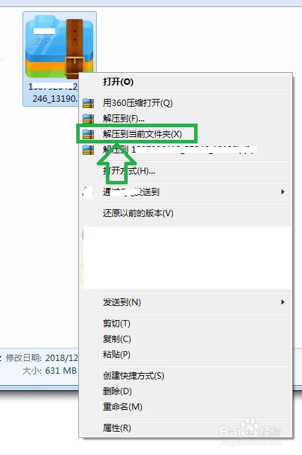 右击我们下载好的游戏文件,弹出右击子菜单,在子菜单中我们可以找到“解压到当前文件夹”。