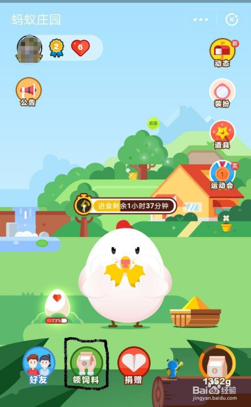 点击 蚂蚁庄园 进入,然后会呈现下图模样,蚂蚁庄园的左下角横标的目的第二个图标“领饲料”。点进去之后你可以看见好几种获取饲料的体例。