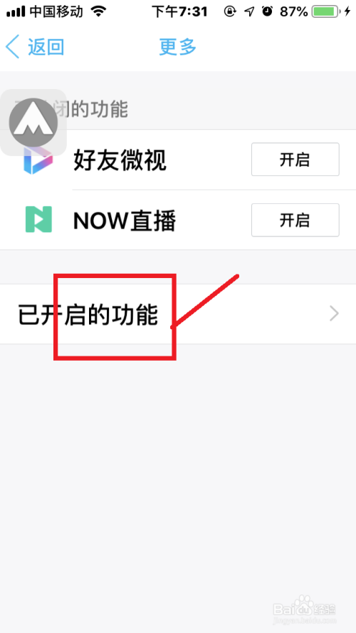 点击“已开启的功能”,点击要封闭的功能,再点击“封闭”——“仍然封闭”,即可封闭部不需要的功能。