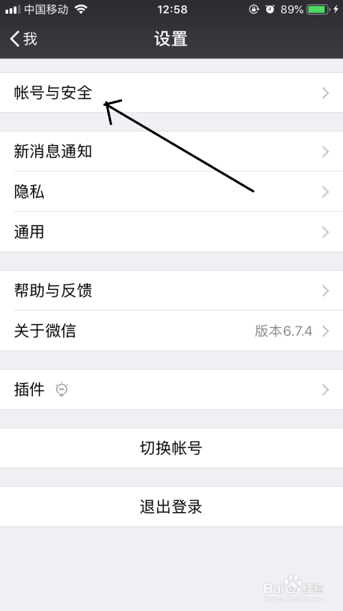 打开设置界面中点击帐号与平安选项。