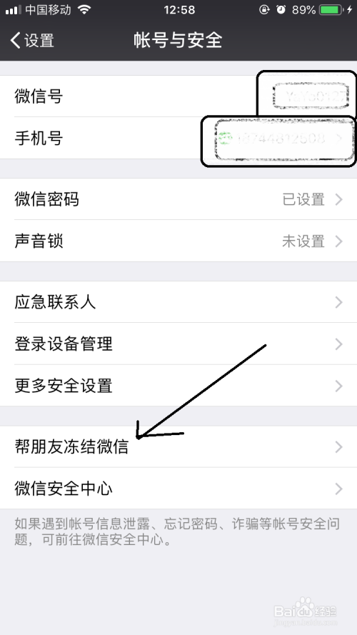 打开帐号与平安界面中点击帮伴侣冻结微信选项。