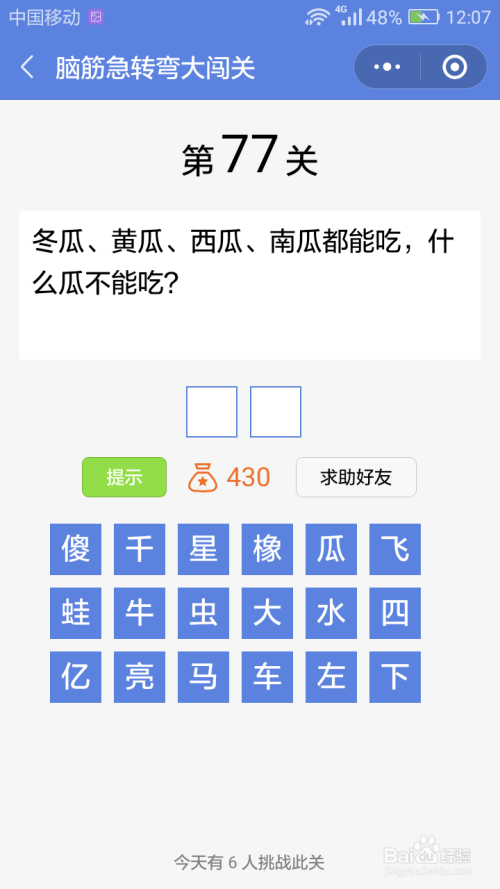 第77关谜底是傻瓜。