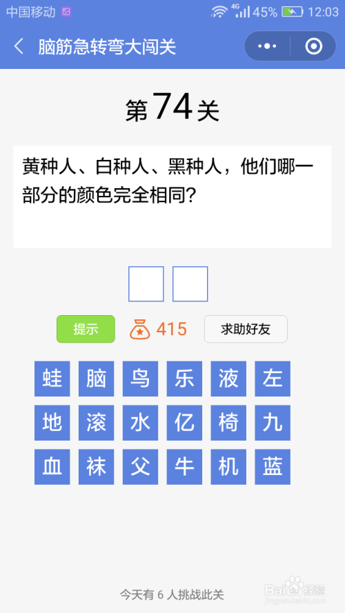 第74关谜底是血液。