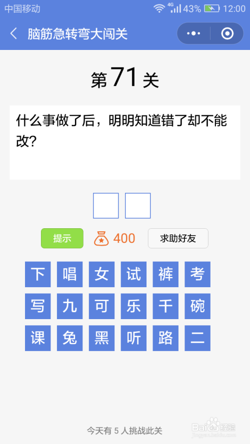 第71关谜底是测验。