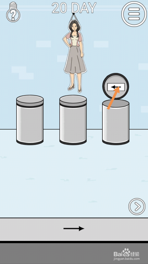 第20关点击左桶盖,然后点击标的目的右箭头。
